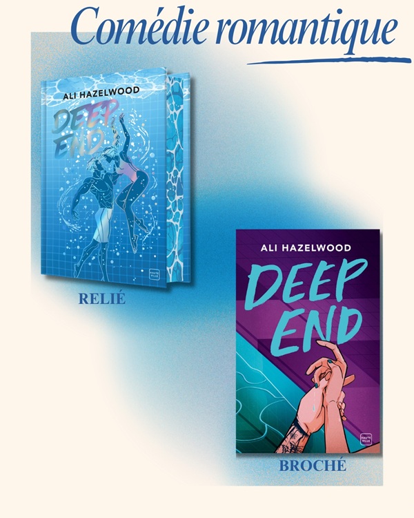 Deep End d’Ali Hazelwood, traduit par Joëlle Touati, en édition reliée et en édition brochée,